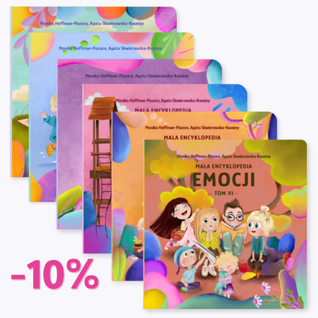 GRATIS! Przy zakupie całej serii otrzymasz kartę z pytaniami do rozmów o emocjach (wysyłaną mailowo). To praktyczne narzędzie dla rodziców, które pomaga jeszcze lepiej wykorzystać książki.