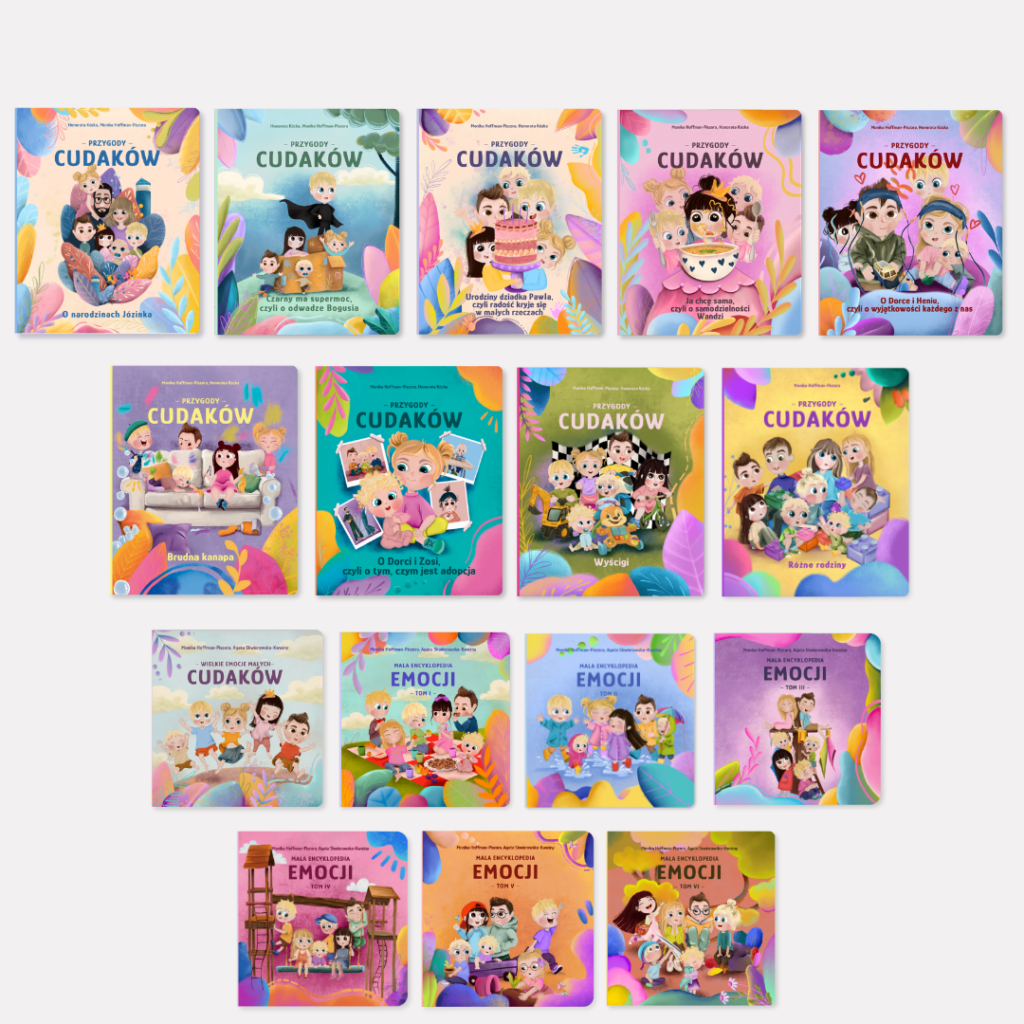 Mamy nadzieję, że Przygody Cudaków zamknięte w naszych kolorowych książeczkach będą uczyć i bawić jednocześnie. Uczyć o emocjach. Tych dobrych i tych złych. Dla rodziców to doskonała okazja do refleksji i dialogu z dziećmi o przeróżnych wyzwaniach…